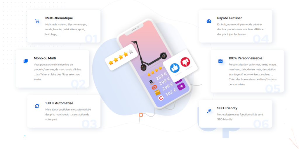 • Maximisation des revenus et enrichissement de l’expérience utilisateur : AffiMax est conçu pour non seulement augmenter les revenus mais aussi améliorer l’expérience sur votre site WordPress, offrant ainsi un outil puissant pour transformer votre espace digital tout en cultivant votre passion pour le e-commerce.