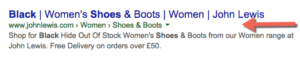 Par exemple, je peux avoir une page de produit qui est rendue à l’adresse exemple.com/mens-shoes/black-shoes et aussi à l’adresse exemple.com/black-shoes. Si quelqu’un cherche « chaussures noires pour hommes », lequel de ces sites a le plus de chances d’être classé ? Lorsque la catégorie ou la sous-catégorie contient des termes de recherche importants, il peut être intéressant de définir la version canonique comme étant celle qui les inclut dans l’URL.
